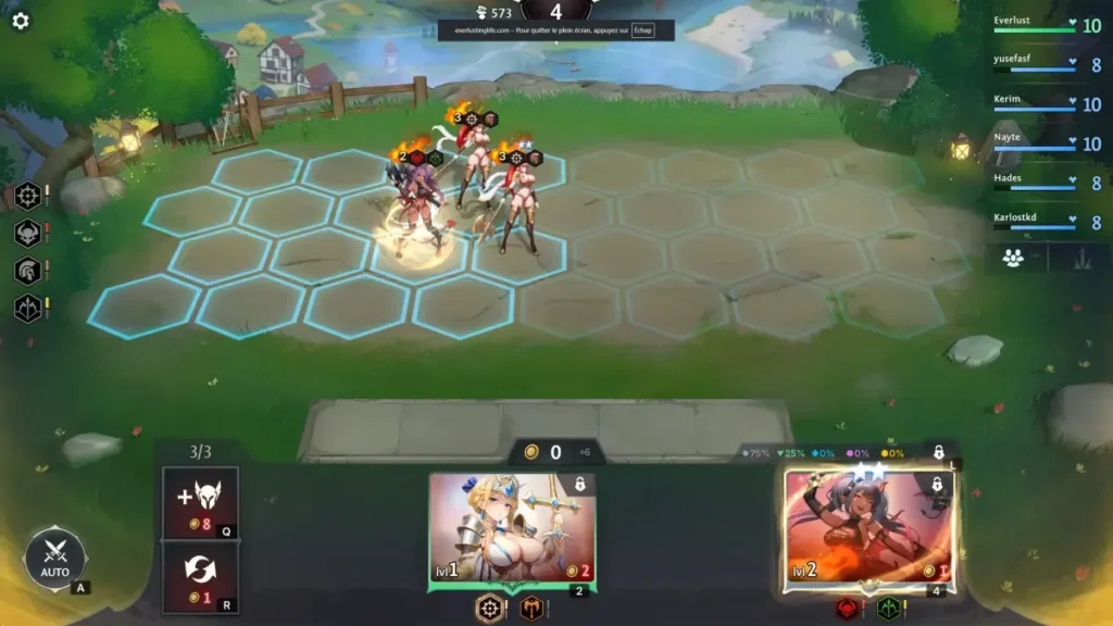 | Automated Combat | Watch the battle unfold. Heroes auto-attack and use their ultimate abilities when their mana is full. | Observe your strategy in action, identify weaknesses in your composition or placement. |