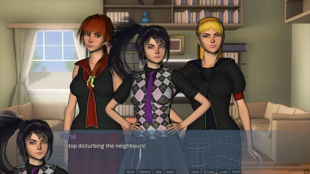* Current Content: As of now, three full romantic paths (Nina, Melissa, and Amy) are complete and polished, with Alice’s route next in development. The plan is for six total, meaning there’s plenty of story already and more to come!